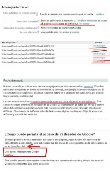 el problema es que no se donde he de colocar el User-agent...ya que si lo pongo delante del código de adsense, no salen los anuncios, lo que sale es User-agent...¿como resolver el problema? Gracias.