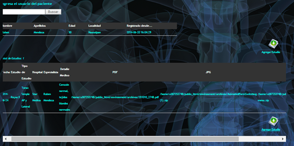Lo muestra desacomodado, por toda la ruta del archivo PDF, JPG y DICOM, ya que al no subir archivos los muestra bien ordenados, el código que muestra la segunda tabla es el querry de arriba junto con este código que acomoda los datos en la tabla ...