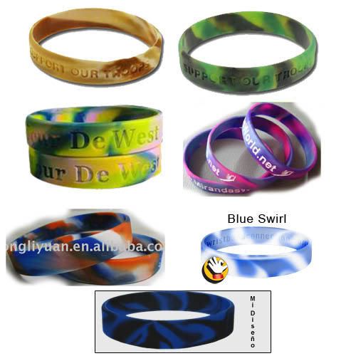 Hola muy buenas noches! Hace poco comencé con un trabajo que es temporal para ofrecer los brazaletes de silicona. Estos brazaletes tienen como principales estilos los segmentados y swirl, lo que no se como hacer son justamente los swirl. Es como un efecto de remolino, y pueden tener hasta 7 colores..., lo que yo necesito es saber como puedo crear ese efecto y también saber si es posible hacer como un layout de este efecto, y poder cambiar los colores con solo pintar con el baldecito, sin tener que hacer todo el proceso para cada pulsera.