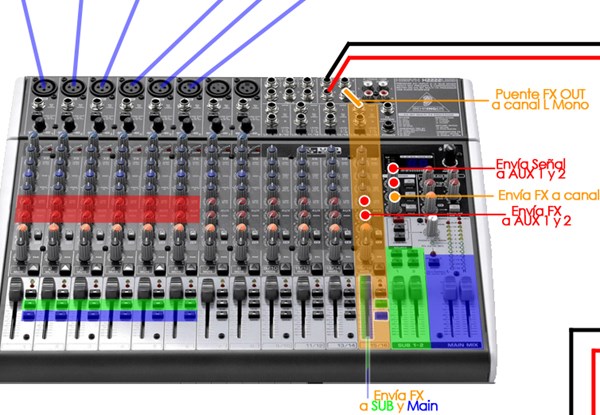 Sí se puede, conectado la salida FX OUT a un canal que tengamos libre y así creamos un "canal de efectos" que se puede enviar tanto a monitores (Aux 1 y 2) como a Subgrupos (SUB) o a la mezcla principal (MAIN) - slurz slurzy