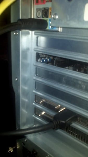 Salidas de la pc una hacia un poder de 75w y la de abajo es la salida hdmi que va hacia mi pantalla