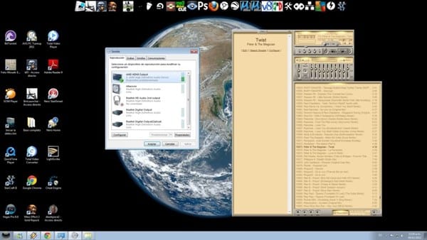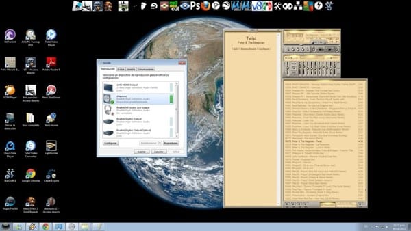 acá si le doy predeterminar altavoces escucho dos monitores los de 75w pero no la pantalla ni los monitores de 150w
