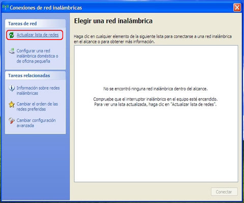 Paso 2. Buscas la red inalámbrica tras pulsar dos veces en ese símbolo . También puedes dar con el botón derecho sobre ver redes inalámbricas y pulsar en actualizar lista de redes: