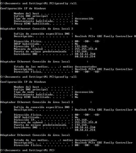 Abres Inicio-Ejecutar y escribes cmd. Te aparece una ventana de comandos cmd (pantalla negra) y escribes ipconfig /all.