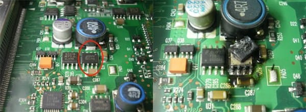 Tengo un portátil HP Compac nx7300 un día empezó a echar humo y no he podido volver a encenderlo. El transformador funciona correctamente (lo he utilizado en otro equipo idéntico). Probando poco a poco conseguí abrirlo y he visto una pieza totalmente abrasada en la placa base. Mirando en otro portátil idéntico identifiqué la pieza como la 6o12N - AA6UF. Tengo poca idea de electrónica por lo que no se por qué se ha podido quemar y si con un poco de habilidad podría cambiarla, dado que me han dicho que no me merece la pena cambiar la placa base de un equipo del 2006. Gracias de antemano.