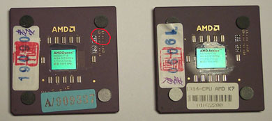 Como veras en la foto, el aspecto exterior del Athlon y Duron es muy similar y si te fijas en la parte superior derecha es en ambos hay una indicación "L1" y al lado ocho puntos de conexión que no se tocan entre ellos.