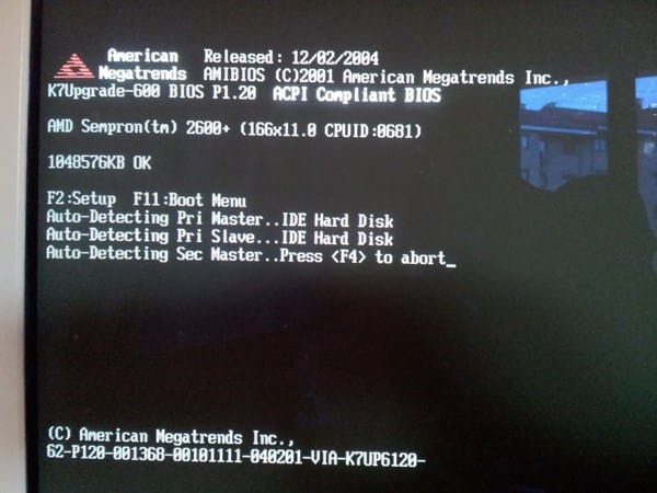 Hola, tengo un pc algo viejo ya, un amd sempron 2600+, el caso es que de repente ha dejado de funcionar. Le doy al botón de arranque y se me queda congelado en una pantalla negra, que me dice que pulse intro para iniciar windows normalmente, pero el teclado ya no responde para poder seleccionar nada, solo responde los primeros segundos para poder acceder a la bios, he entrado e intentado arrancar desde el cd pero no funciona. Como no me deja pulsar nada se reinicia, y así siempre. Dejo unas fotos por si ayuda. Gracias.