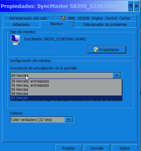 pero el samsung de 23" S23B350H (HDMI) lo compré la semana pasada y ya has leído lo que te comentaba, no llega mas de 60