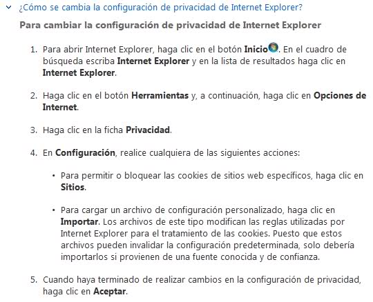 En el Internet Explorer, dentro de Herramientas > Opciones de Internet > Privacidad...