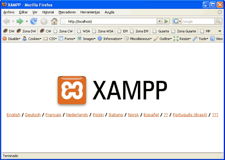 http://localhost/Tendrá que aparecernos una página web del servidor XAMPP, que nos confirme que está todo funcionando correctamente. Algo como lo que se puede ver en la siguiente imagen: