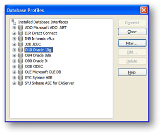 Elige O10 Oracle10g y selecciona el botón NEW