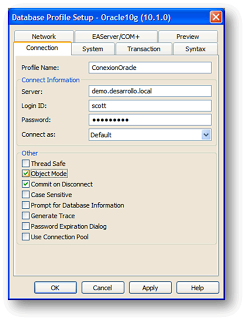 · En profileName: Asigna el nombre que deseas darle a la conexión ConexionOracle