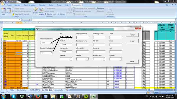 2.- Que cuando en el Combo de Sistema y Segmento seleccione S500 y CA se inhabilite en TextBox de Bin