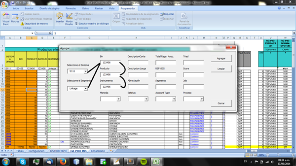 1.- Que cuando en el Combo de Sistema y Segmento seleccione S111 y Linkage Lo que escriba en Bin se duplique en Producto e Instrumento como esta en la imagen sin la necesidad de escribirlo
