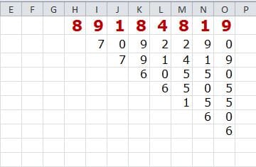 si nos podemos dar cuenta, la segunda fila de numeros (7092290) son el resultado de la suma en tre si de la primer fila asi, si yo sumo el 8+9=17 pero la idea es solo poner la unidad en este caso podemos ver el 7, si sumo 9+1=10 poner la unidad es decir el 0, 1+8=9 ponemos la unidad en este caso el 9 y asi sucecivamente con toda la fila.