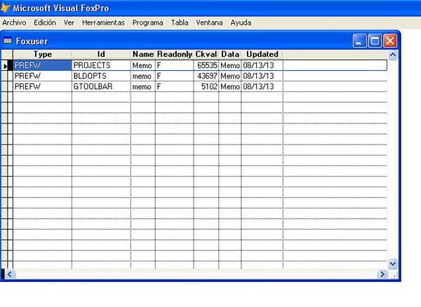He visto varias respuestas que explican que se tiene que modificar la tabla de foxuser.dbf con el comando set resource off. Pero no veo de como modificar solo veo esta imagen: