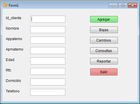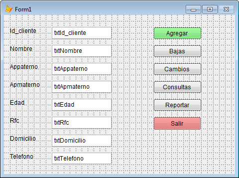 Saludos compañeros, soy nuevo en esto de la programación y necesito hacer un formulario pero con códigos sin usar el asistente Wizart tenia que poner 6 botones (altas, Bajas, Cambios, Consultas, Reportes y salir) ya ehh programado 4 botones solo me falta programar los botones "Consulta y Reportes" Quisiera ver si me pudieran apoyar proporcionándome los códigos si los tienen ya que es de importancia mi formulario. Sin mas que decir les doy las gracias por el tiempo que me prestaron al leer mi problema GRACIAS.