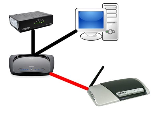 al tener otro router mas (Edimax EW-7209APg) me gustaría saber si hay alguna manera de conectar por wifi los dos router y que a su vez el Edimax "Estire" por así decirlo la señal. Creo que esto se llama Point to Point, a continuación dejo una imagen mas o menos de lo que quiero hacer