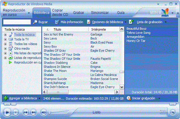 Seleccionaremos las canciones que queremos incorporar al CD: