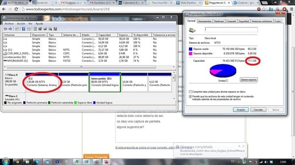 De vuelta a mi windows 7, el proceso de arranque me lanzo una comprobación automática de la partición en cuestión y muy bien hasta aquí, pero cuando entro en Mi PC, resulta que me detecta el espacio que había antes, pero no el nuevo que he creado.
