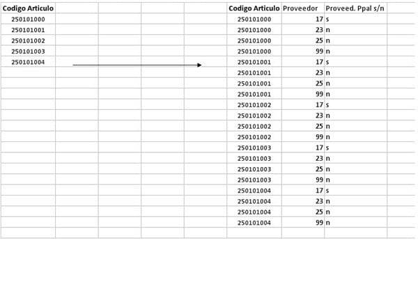 Necesitaría una macro para poder repetir la fila 4 veces, tengo una planilla con 184000 artículos y necesito repetirlos 4 veces a cada uno uno debajo del otro así con todos los artículos. ¿Podrá ser? Además necesitaría que en la columna del al lado se repita siempre la misma secuencia agrego un print de pantalla a modo de ejemplo: