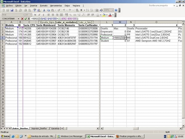 el libro de excel esta orientado a la anotación de números de serie de componentes de un comutadoras, y son varios modelos modelo1, modelo2, modelo3.