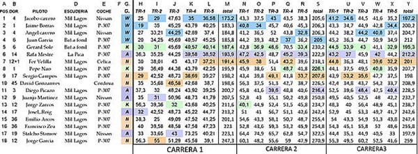 Tu macro funciona perfectamente,era yo que no me entero de la pelicula,un compañero mio la activo ayer,me gustaria pedirte un ultimo favor;¿es posible crear en tu macro tres grupos de 6 columnas?es para poder hacer tres carreras el mismo dia e ir viendo los tiempos minimos de todas ellas,te dejo otro grafico donde se ve mejor.