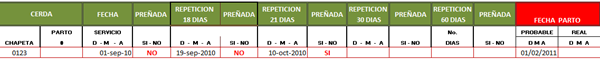 Así no me ingresan 2 SI en la misma fila, esto con el fin de saber si un marrano(cerda) al inseminarla son 5 intentos, y manda una fecha probable de parto a la columna M fila 10 y de hay hacia abajo sucesivamente.