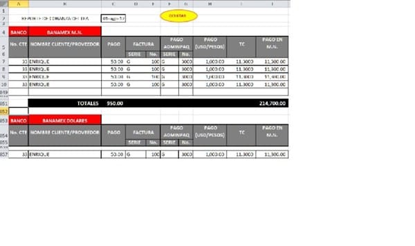 en un libro tengo 3 hojas con datos de movimientos de bancos con rango A1:O800+/- y una hoja que concentra estos datos por dia de consulta, donde tengo el mismo num de filas por cada hoja de movimientos y según el dia de consulta aparecen datos en las celdas y las otras permanecen vacías. Un fragmento de la estructura de este resumen se puede observar en la imagen que inserte.