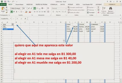 Lo que no puedo hacer es la formula para que al seleccionar un articulo en la lista desplegable me salga el precio en la celda de la derecha