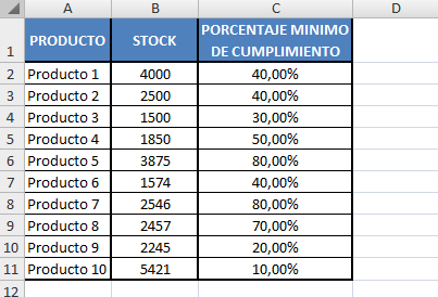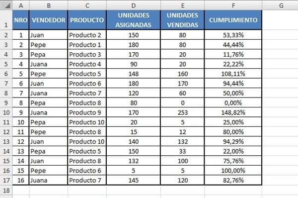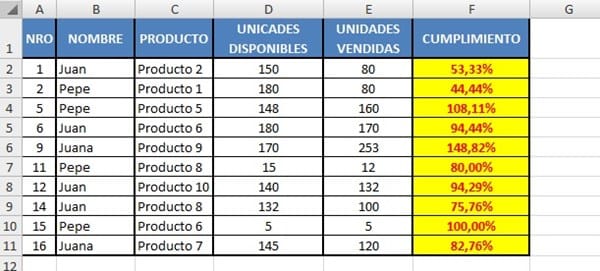 Se necesita encontrar a las personas que hayan cumplido con el porcentaje de cumplimiento por producto (las condiciones serían Producto y Cumplimiento):