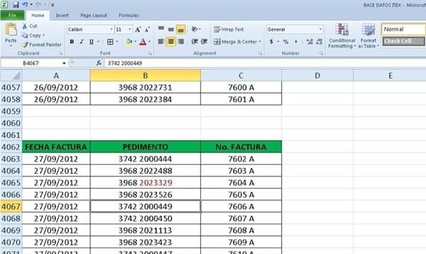 es que si tengo duda de que las facturas ya están hechas voy a mi base de dato, que es la del ejemplo, y busco esos 7 números, pero hay veces que me traen facturas ya hechas y solo tengo que capturarlas a mi base de datos y pues son demasiadas como para ponerme a buscar las 30 que me trajeron.