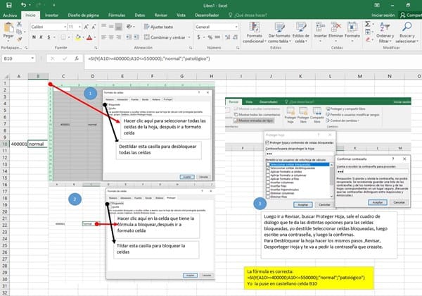 Yo quiero poner en a10 el valor de glóbulos rojos pero que en b10 me salga si es normal o patológico