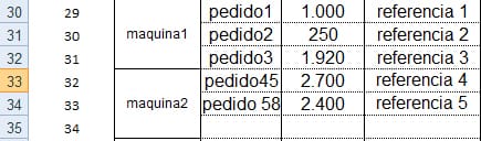 Tengo una hoja de excel donde cada dia se importan datos de unas máquinas y sus pedidos que cada dia varían el lugar que ocupan en fila y columna.