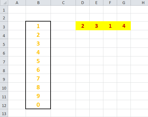 Ahora como ya tenemos otro valor que es el 0 (cero), necesito buscar la diferencia o el numero que me falta para llegar al cuarto dígito del numero base (G3), con respecto a los números de referencia ( B3:B12 ). En este caso seria de 0 a 4 = 4. Quedando asi: