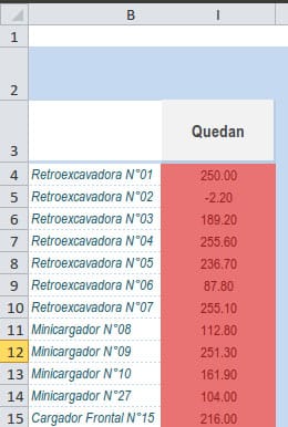 1.Los valores que sean negativos con color rojo y el texto de la celda que se encuentra al lado izquierdo, que le corresponde.