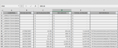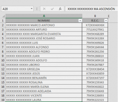 en esta, el valor de celda de la columna "A" se integra de la siguiente manera: