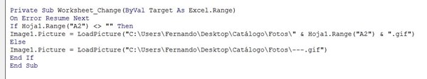 El archivo de excel tiene un control de imagen que me carga las fotos en función del valor que tenga la celda A2.