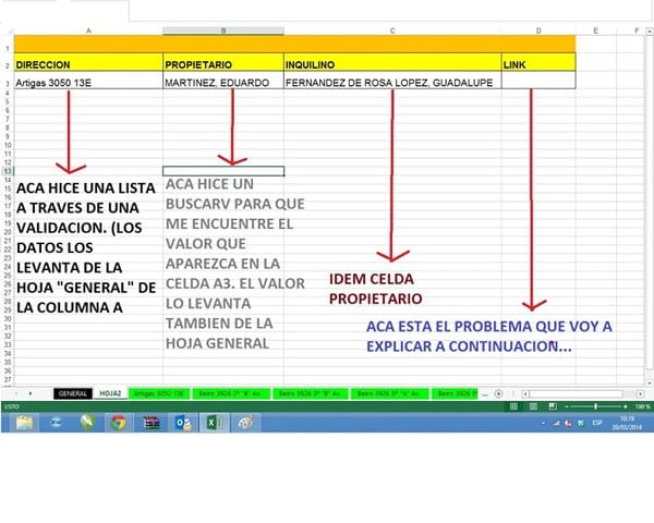 2) Aca en "HOJA 2" es donde tengo el problema, en la parte de LINK, la idea es que me levante los links de la hoja "GENERAL" y me lleve a la hoja que correspondí al hacer click.