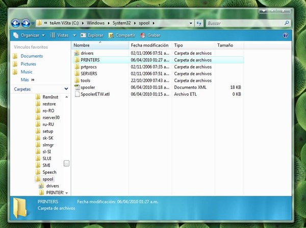 Para apoquinar todo bien puedes hacer lo siguiente y de ahí de nueva cuenta Win+R y le pones ahora system32->spool->PRINTERS----- De ahí borras todos los archivos que tienes en cola de impresión los selecciones todos click izquierdo y eliminar ya después que los hayas eliminado procedes ha instalar tu softwareo si no agarras y lo activas de nuevo de la misma forma pero ahora le das en iniciar en cola de impresión click izquierdo y la opción que ya dije!