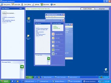 Necesito un programa -sencillo- que en ese momento que me llama, se ejecute en su equipo (que el lo ejecute) y me permita entrar en su equipo y con mi ratón y teclado poder escribir y moverme por su equipo como si del mio se tratase, es decir un control remoto (me imagino que todo lo que me tendrá que decir es su ip (ejecutando ipconfig se puede saber) y yo ejecutando en el mio un cliente poder acceder a su equipo con la IP que el me diga).