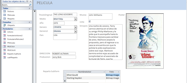 Y la otra consulta es: Cómo hago para que en los campos de la tabla actores no me salga como una tabla incrustada en el formulario sino que me aparezca como los otros datos, y que la foto se vea. Saludos a todos