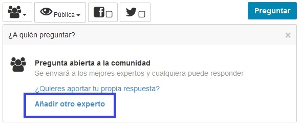Al pulsar sobre el, se desplegará otra ventana, "¿A quién preguntar?", en la parte más inferior, vemos "Añadir otro experto",