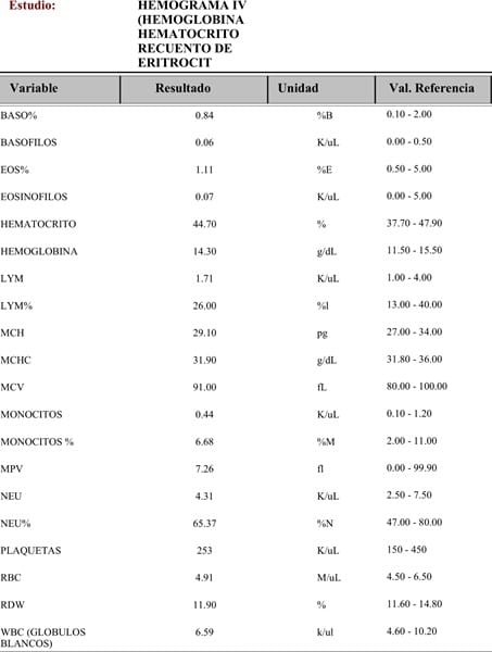 Hola. Hace poco fui al medico y le pedí que me autorizara un cuadro hemático solo por rutina ya que yo padecí de anemia, soy estitica y sufro de colon irritable. Estos fueron los resultados: