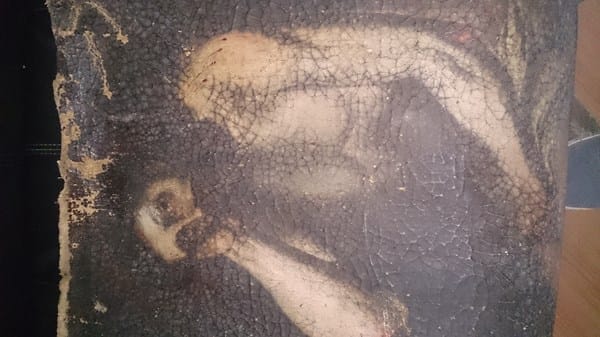 Este cuadro parece haber sido mal limpiado en la parte del torso, por lo que han dañado su pintura en esta zona. Le hace falta una buena limpieza, que sólo puede hacer un experto, aunque su valor en el mercado no sea mucho y quizás a usted no le valga la pena por negocio. Es un buen cuadro para tener en su casa, por gusto. Poca gente tiene un cuadro del XVII, aunque no sea éste de primera linea.