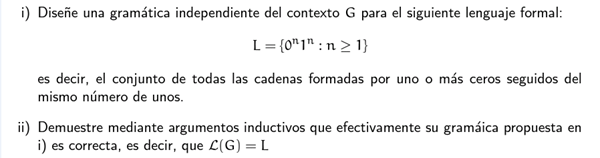 Demuestre una gramática de libre contexto G para el determinado lenguaje formal