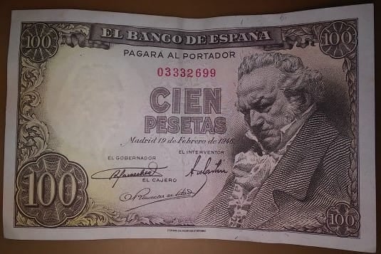 - 100 Pesetas 19/02/1946 Francisco de Goya SIN CIRCULAR Y SIN SERIE ( ligera doblez central pero no arrugada )