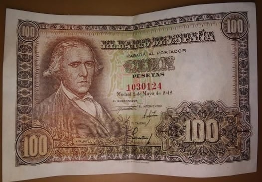-100 Pesetas 02/05/1948 Fco. Bayeu SIN CIRCULAR Y SIN SERIE ( ligera doblez central pero no arrugada)
