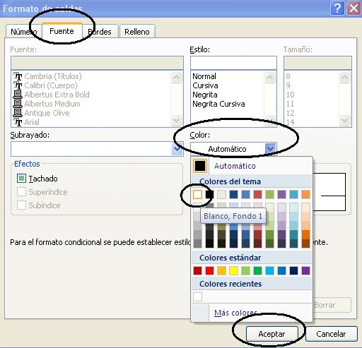 8. En el campo de "Color" cambia el color a "Blanco", tal como se muestra en la siguiente imagen.