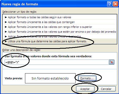 10. La ventana se cierra y regresas a la ventana "Nueva regla de formato", presiona nuevamente el botón "Aceptar"